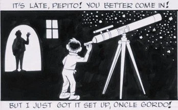The characters of Gordo are grounded. They feel like real humans whose stories play out as they would in real life. In the strip reprinted here, the loving uncle Gordo tries to ensure that his nephew gets the sleep he needs to be healthy, but the nephew doesn’t want to go. Instead, the nephew wants to grow to become a scientist and he wants to learn about the stars in order to ensure he is ready. In each strip the characters feel believable and the conflicts they have feel tangible.